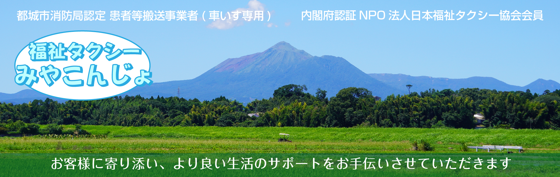 福祉タクシー みやこんじょ 都城市を中心にお客様に寄り添いより良い生活のサポートをお手伝いさせていただきます。